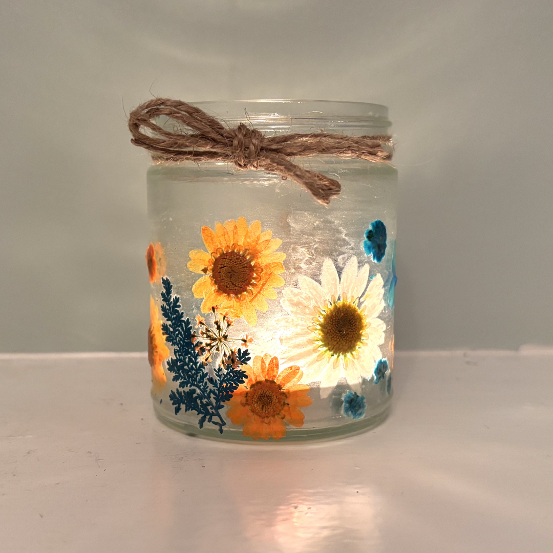 Pressed Flower Lantern: Design and create a gorgeous lantern using pressed dried flowers. Add a candle for a romantic glow, or use a string of fairy lights to create a kid-friendly enchanted garden mood.